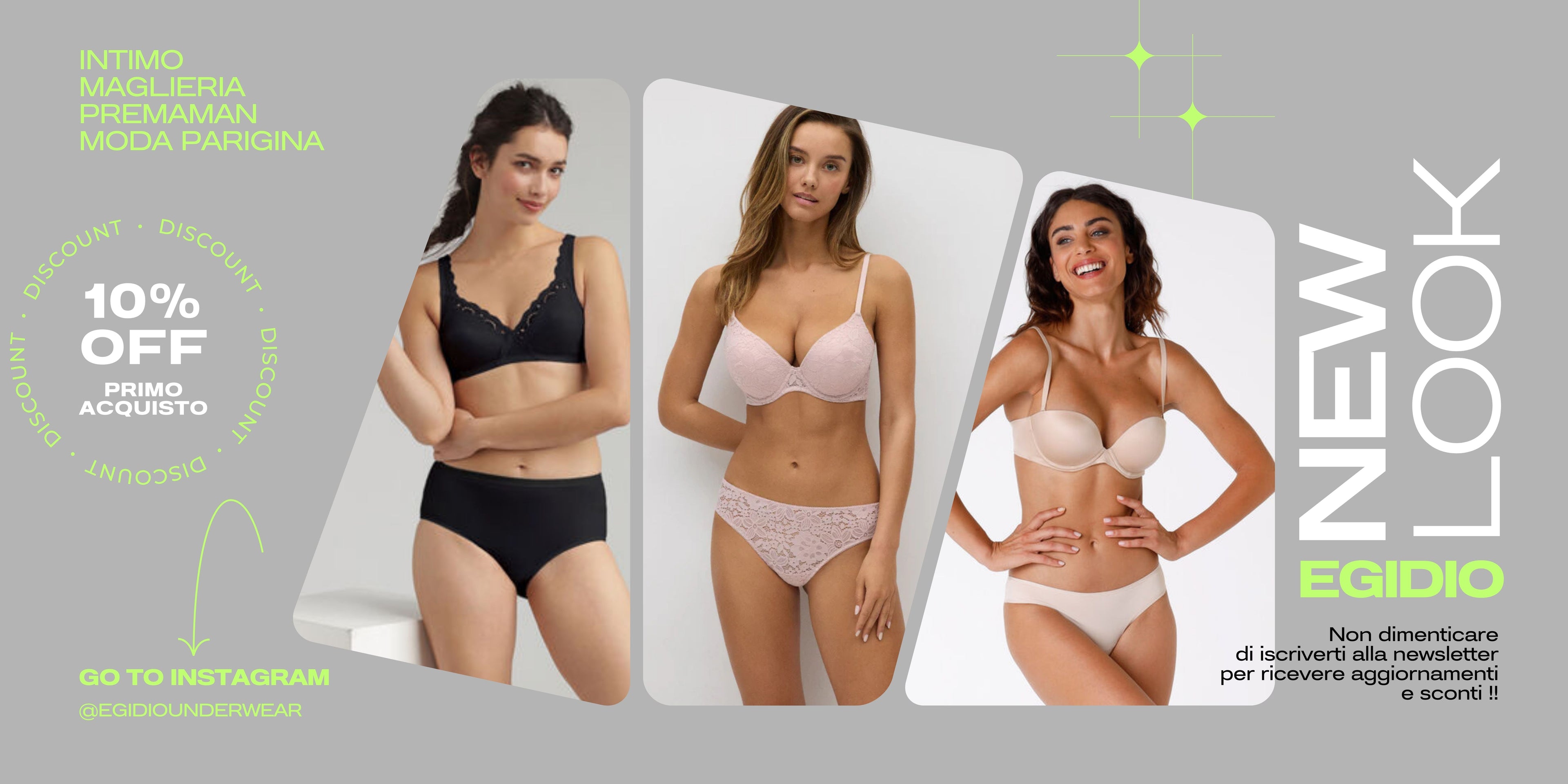 Egidio Underwear da anni nel settore dell'intimo offre una selezione esclusiva di abbigliamento intimo uomo e donna dei migliori marchi, sinonimo di qualità e comfort. Scopri collezioni eleganti e moderne, realizzate con materiali di pregio, per garantire vestibilità perfetta e stile senza compromessi.